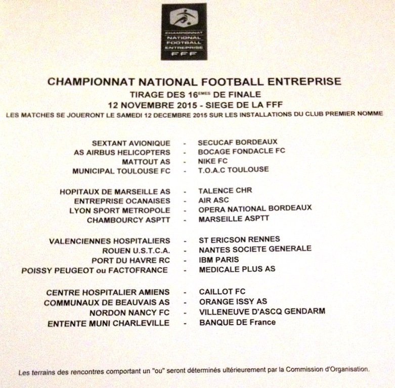 En effet, à la suite du tirage au sort qui a eu lieu le Jeudi 12 Novembre, les joueurs de Coach Dumè recevront l'équipe parisienne de AIR PARIS. Cette équipe évolue en championnat DH Foot Entreprise de la ligue de PAris Ile De France et figure actuellement à la 5ème place avec 3 victoires, 1 nul et 3 défaites. Dernière étape et dernier match avant la phase de poule pour les ocanais qui aborderont cette rencontre avec pour amibiton de retrouver les joies des compétitions nationales.