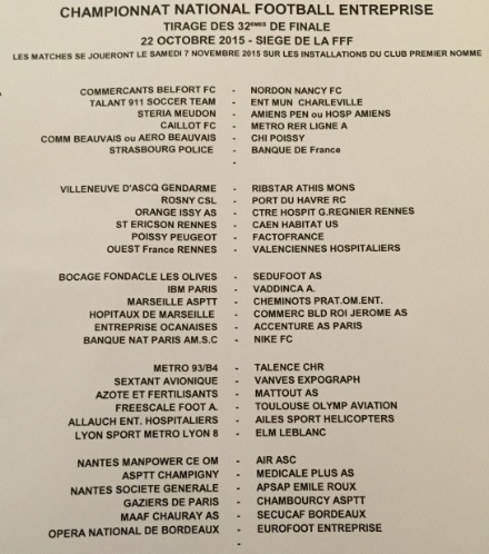 Tirage des 32èmes de finale du Championnat National le 7 Novembre